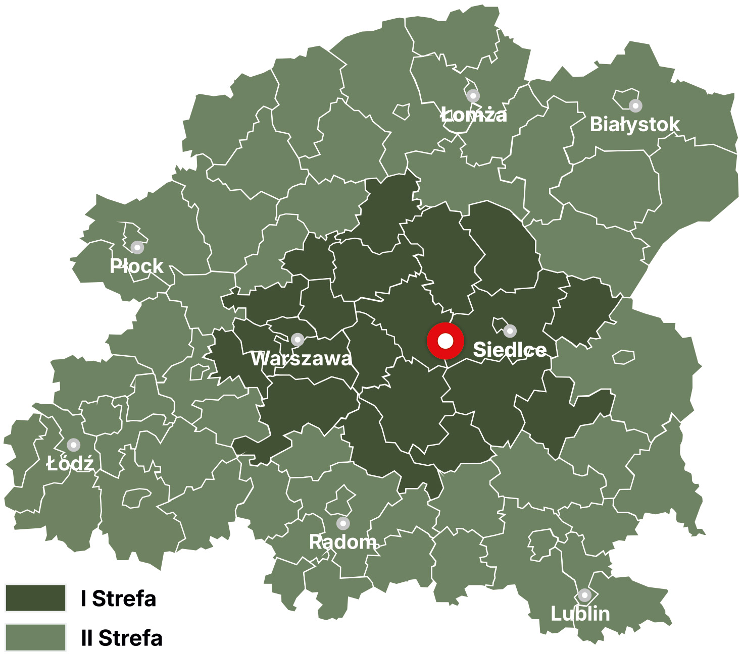 Działamy w centralnej i wschodniej Polsce – głównie w województwie mazowieckim